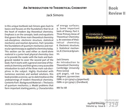 Read An Introduction to Theoretical Chemistry Epub ManyBooks